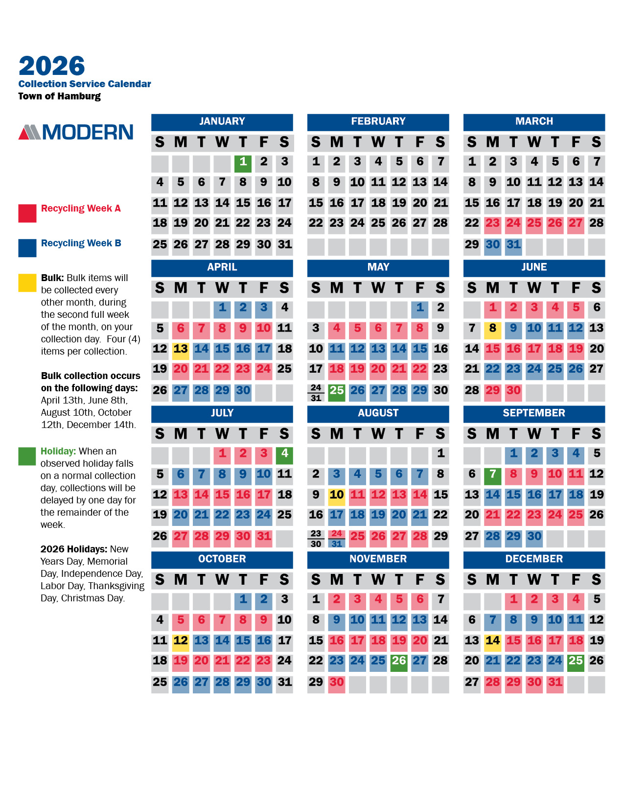 Collection Schedule AkronAmherstAngolaBarker Blasdell Cambria Cheektowaga ClarenceEast AmherstEvans HamburgHartlandLake ViewLewistonTown of LockportCity of Lockport Middleport Newfane Newstead Town of Niagara Orleans Orchard ParkPendletonPorterRoyaltonSomerset West SenecaWheatfield Williamsville Town of WilsonVillage of Wilson Youngstown